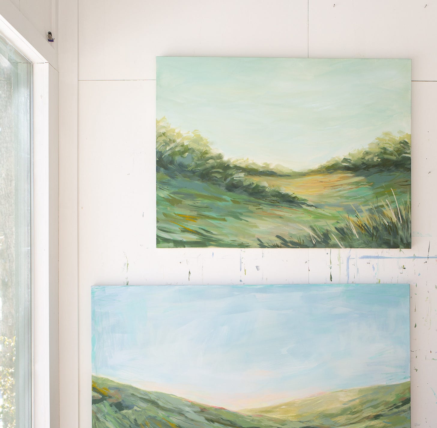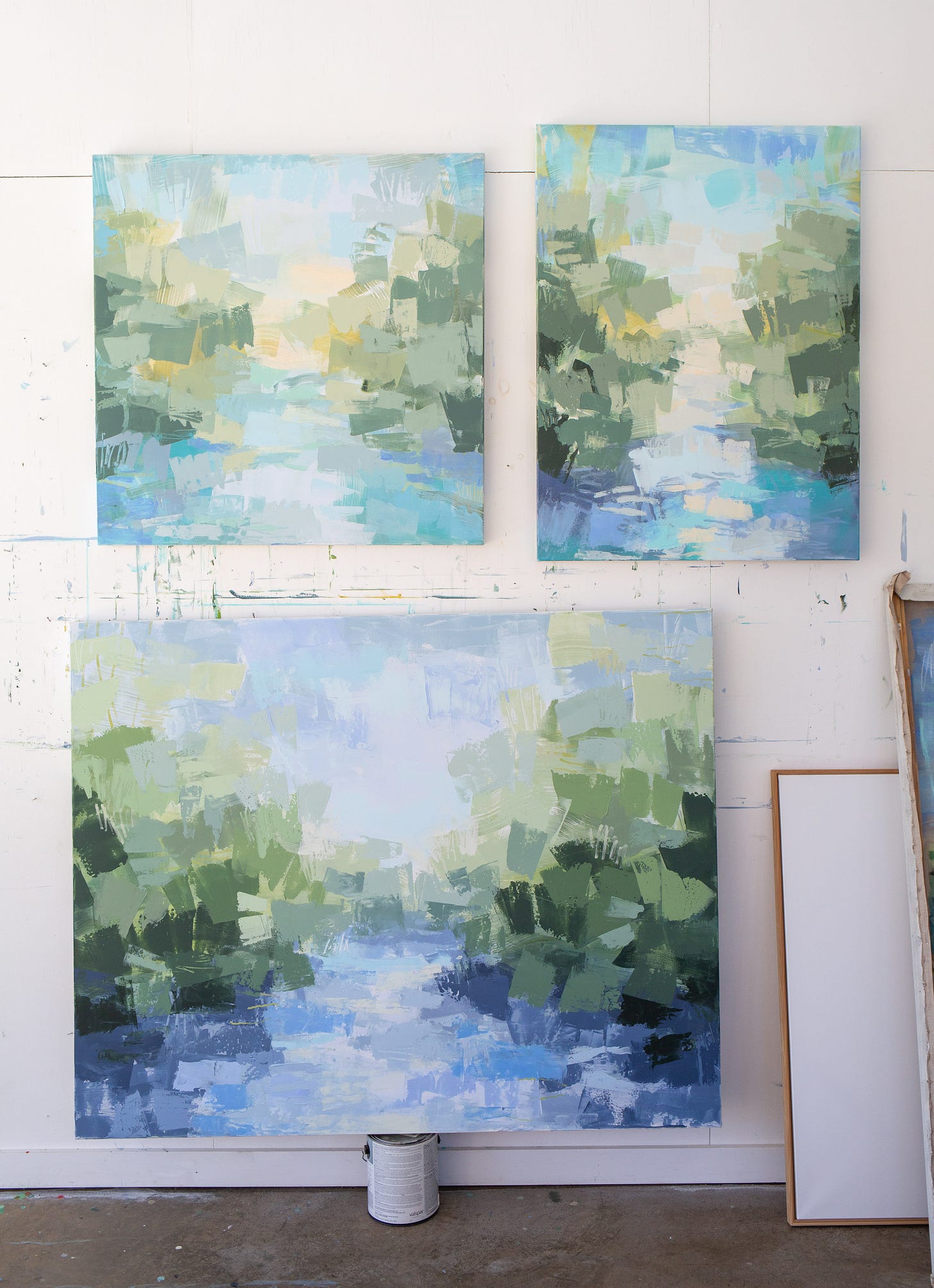 For a while now I’ve wanted to share more about what I’m working on in the studio and offer a glimpse into the process of making of these paintings. I often paint a bundle of larger canvases and ship them off to galleries before even showing them to anyone besides my family if they happen to swing by the studio. Love my fam, but I figured it would be nice to share them with you, as well.