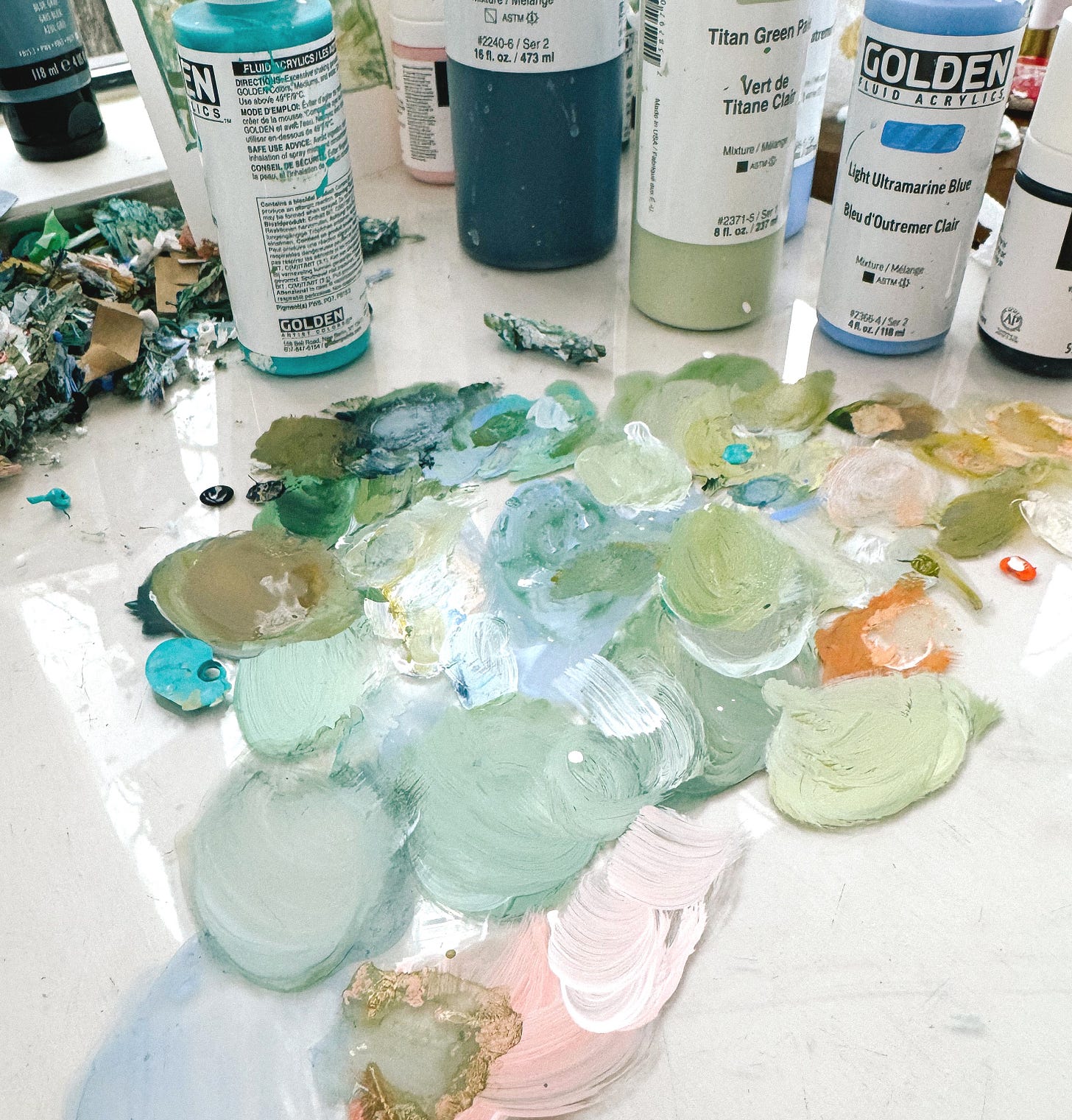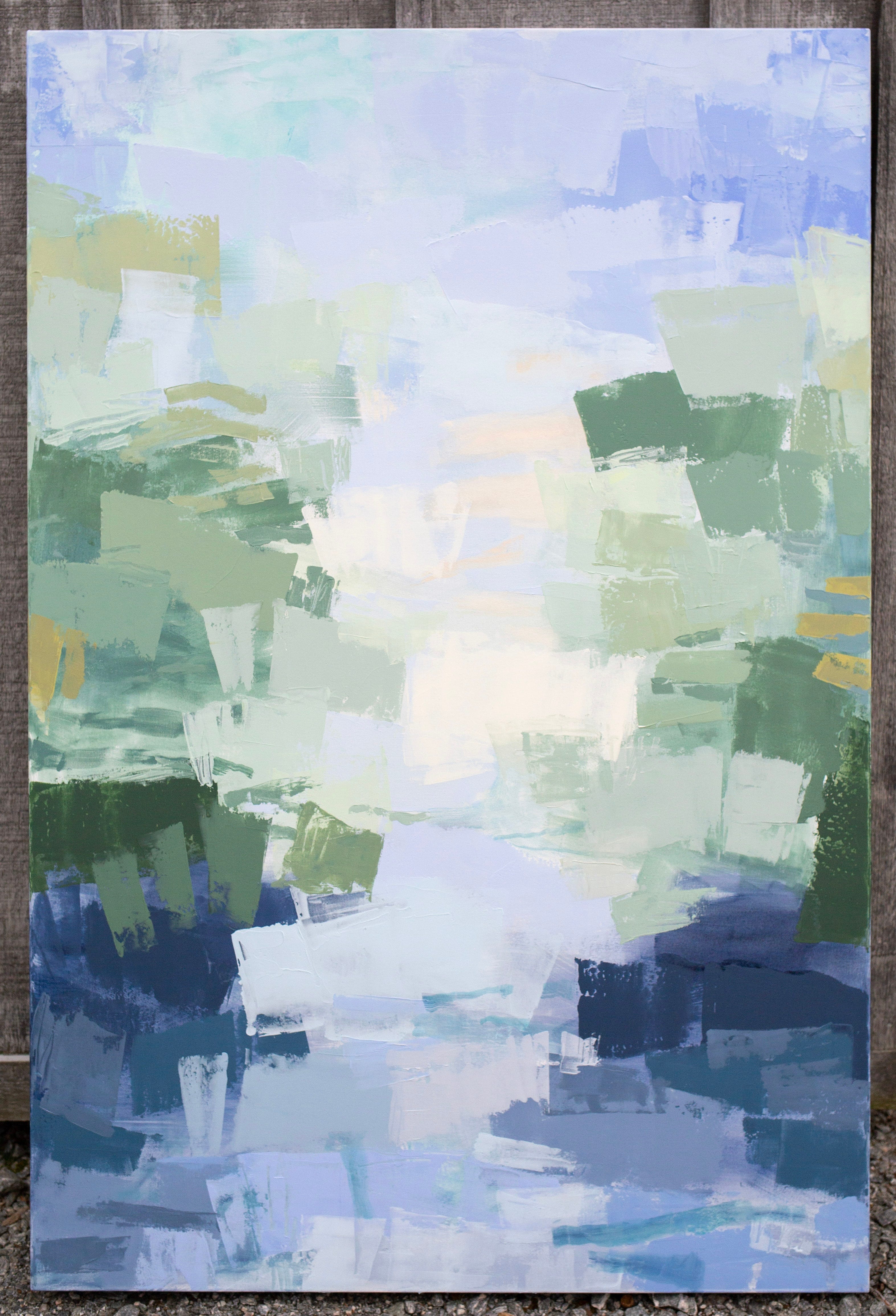 Next, I jumped into this 60x40” abstract river for a fantastic interior designer who commissioned the piece for a mountain home in Colorado. As I’m typing this I just realized both of these recent commissions went to mountain homes - one Eastern, and one Western. Fun! Anyway, this painting was based off a smaller one that sold a couple years back, so I got to revisit the images from that piece and remind myself how I approached that painting in order to move forward on this one.