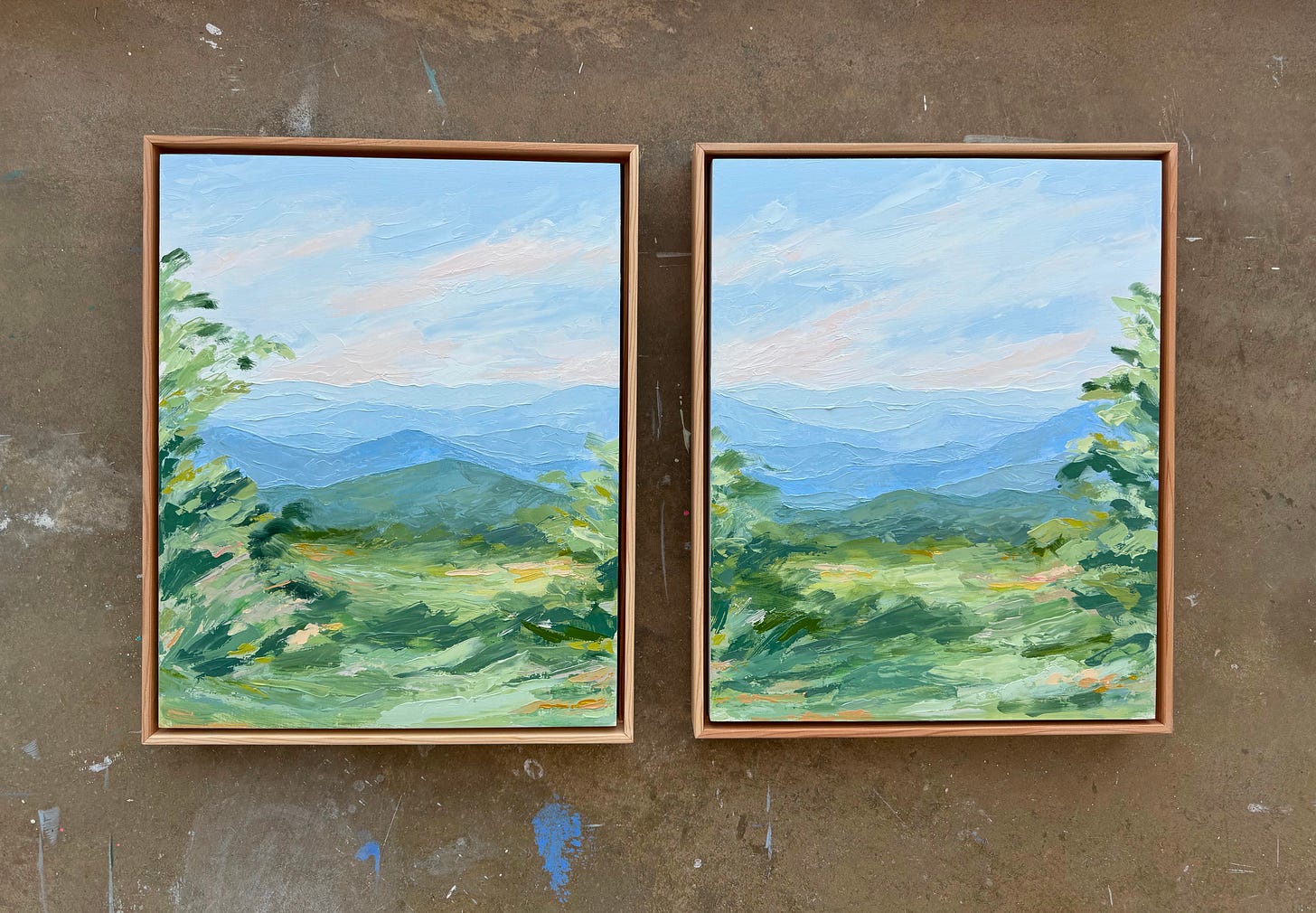 This landscape diptych was commissioned by a lovely collector who previously purchased some landscapes from the UK series. I was absolutely delighted to bring out the oil paints and create this pair of paintings for their cabin in the Blue Ridge Mountains…