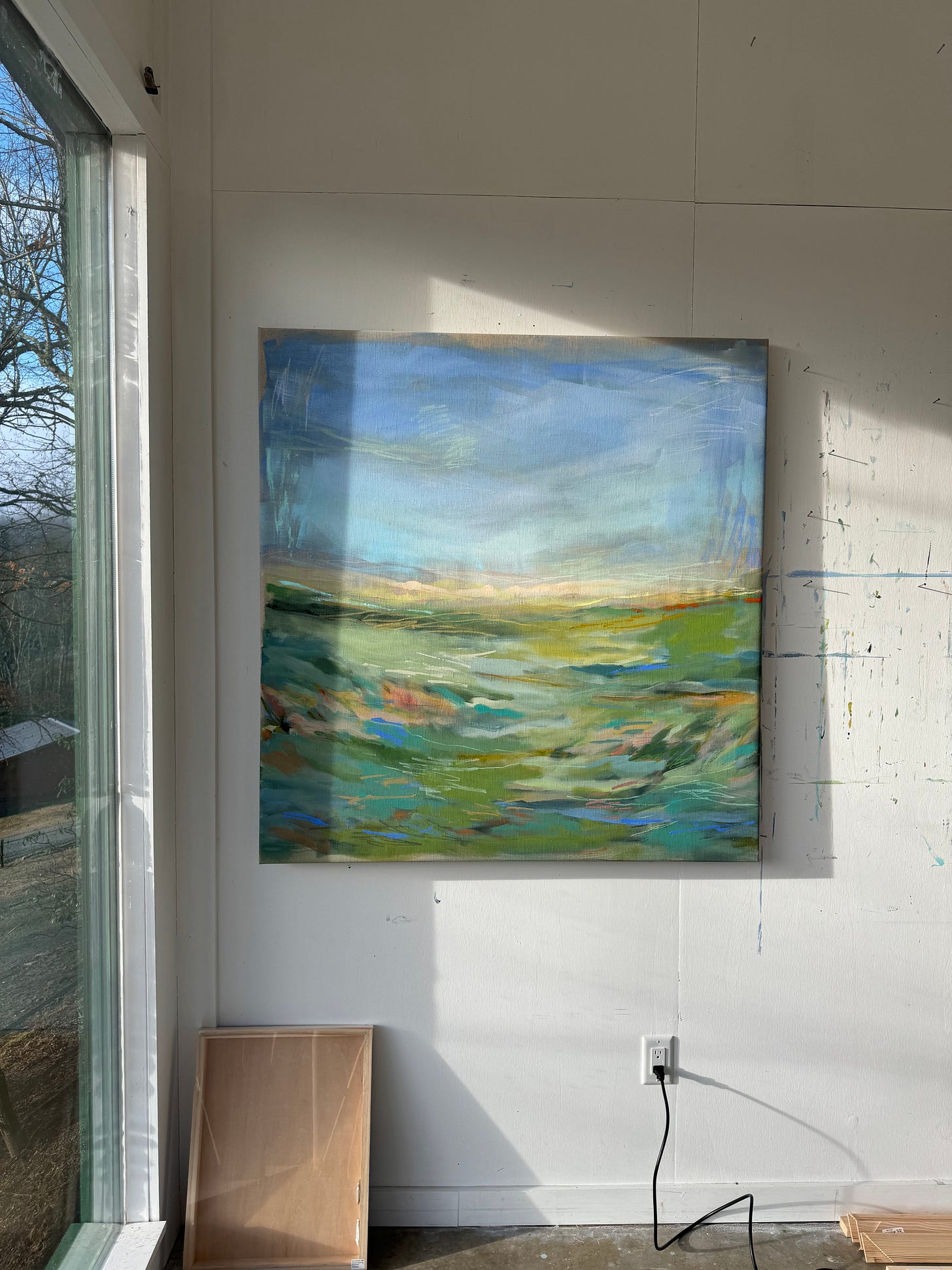 Okay, I know I included this painting in a previous In the Making when it was still on the back side of a bigger linen canvas, BUT now it’s finally stretched right-side-up! I wanted to keep a peek of the raw linen around the edges, so I opted for a sliiightly larger 48x46” stretcher.